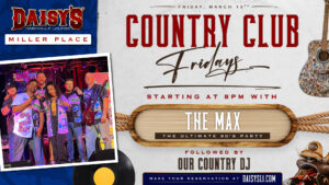 Country Club Fridays welcomes The MAX – The Ultimate 90’s Party to Daisy’s Miller Place. Get ready for all the 90’s hits you forgot you loved — live, loud, and dance-floor ready.